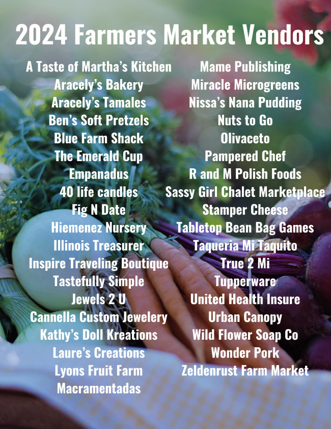 The Palos Heights farmers market features a variety of local vendors and nearby farmers. See the list of vendors selling at the 2024 market below.