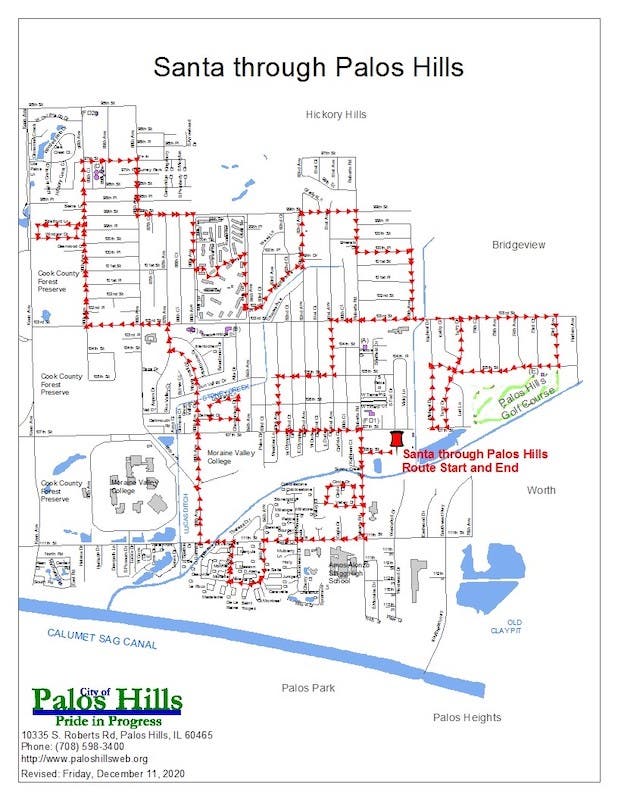 Palos Hills Shares Map Of Santa's Route Through Town This Sunday