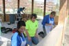 Barkus distributed colorful T-shirts to the team including Jean Swiecicki, Jamie Martin, Nancy Bohne and Dawn Skraba, and the work began. The group laid tarps to protect the new, smooth concrete floor and taped around the bottoms of the walls. Railings were lightly sanded and staining began.