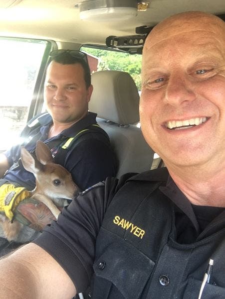Sawyer said he and fellow police officers and firefighters didn’t bother to check to see if the fawn was male or female. Nor did they name it.