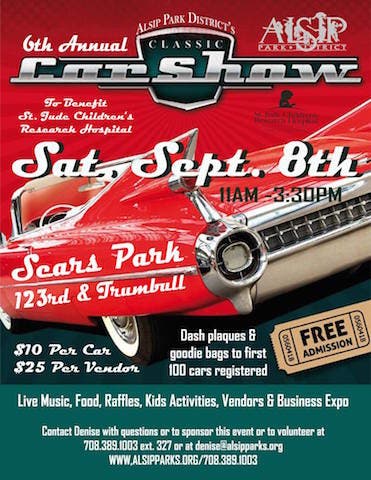 The Alsip Park District will host its sixth annual Classic Car Show For A Cure Sept. 8 benefitting St. Jude's Children's Research Hospital.