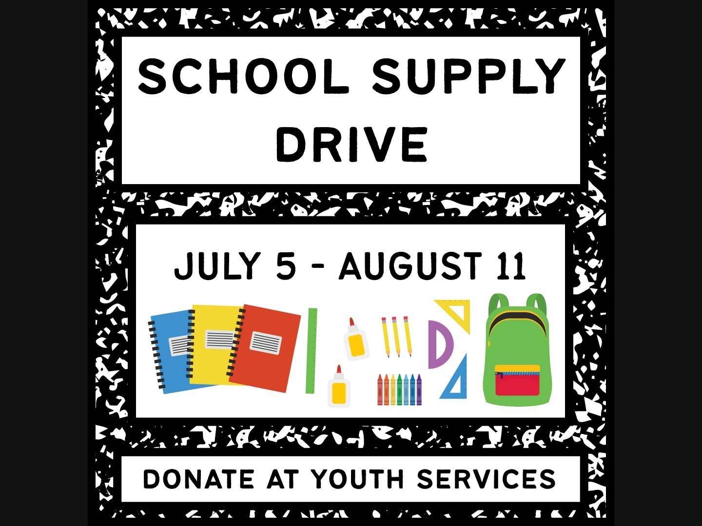 We invite our families to visit the Library's Youth Services Desk this week to pick up items that were collected during the School Supply Drive. We will be giving out supplies all week, while supplies last.