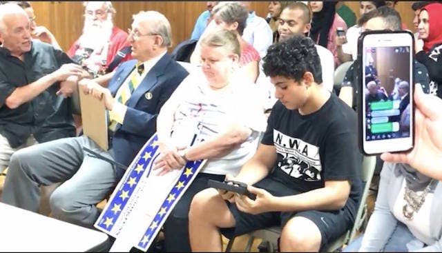 Activists shout down GOP Congressional Candidate Art Jones at the Palos Twp. board meeting | Courtesy of Take On Hate Campaign