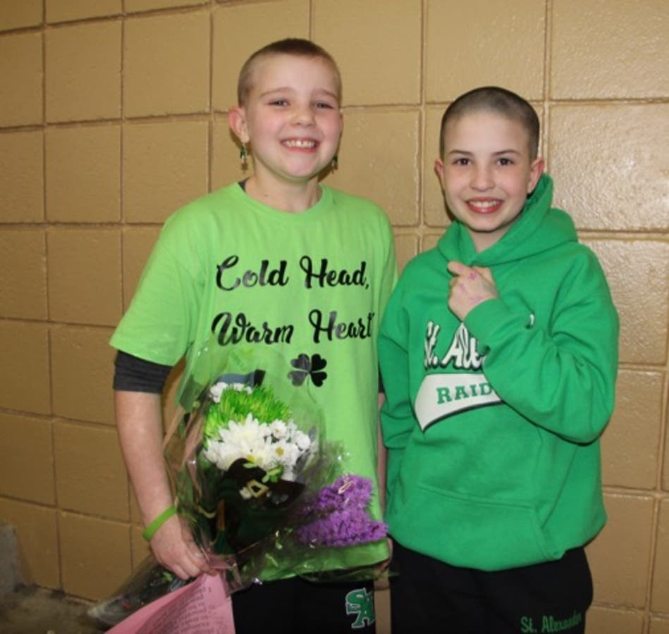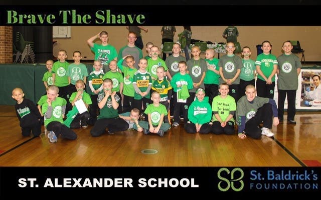 St. Alexander students raised $11,000 for pediatric cancer research by shaving their heads at a St. Baldrick's fundraiser.