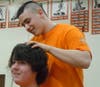 Lukasik took a ceremonial first swipe off the heads of many of his fellow baseball players. By the end of the event, he was left with a mohawk himself.