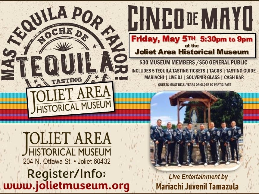 Join us for Tequila Tasting & Tacos this Cinco De Mayo (Friday, May 5th) at the Joliet Area Historical Museum!