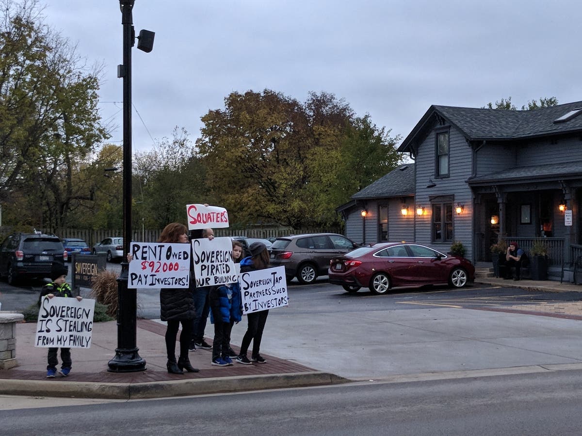 Argoudelis also responded to the weekend demonstrators, who held signs claiming the restaurant owners are "squatters" and haven't paid rent in a year. Argoudelis said Sovereign stopped paying rent after the landlord failed to make promised HVAC upgrades. Lewis said the restaurant's parking lot is also in need of repair.