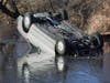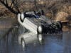 In a press release, Plainfield police said they received a call reporting a car in the creek around 7:10 a.m. Upon arriving, officers discovered the upside-down Mercedes "completely frosted over with ice formed in the creek and around the vehicle."