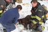 The chocolate Lab, named Kendra, was brought outside by Lt. Mike Obman and firefighter-paramedic Joe Broadus. Oxygen was administered to the pooch, who was later taken to a veterinarian.