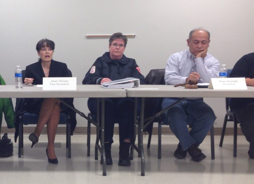 Photo: Park board vice president Janet Silosky (left) speaks about alleged ethics violations by then-president Peter Hurtado during a Jan. 29 park board meeting as Hurtado (far right) and Mary Kay Ludemann listen.