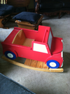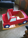 Selling a fire truck rocking chair made out of sturdy wood. Barely used. Light water marks ( I think) on front "window". Great for a little boy. Holds up to 100lbs. Asking $50.00 or best offer.