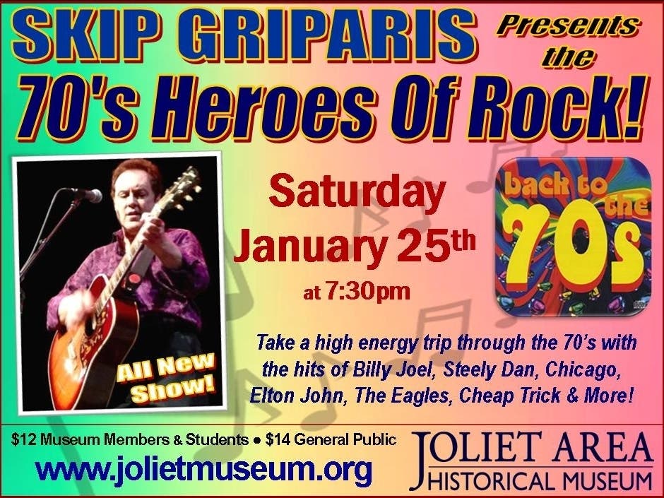 Skip Griparis Presents "The 70's Heroes Of Rock"! Saturday, January 25th at the Joliet Area Historical Museum