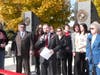 Village officials joined the family of longtime trustee Edward "Doc" McCartan in unveiling new veterans memorial.