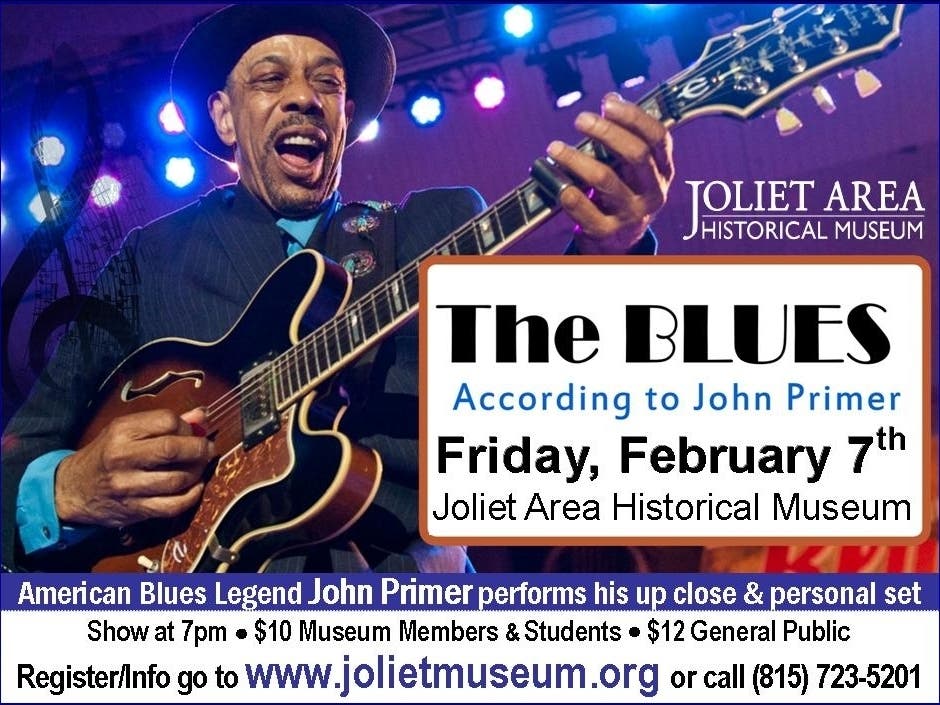 The BLUES According to John Primer at the Joliet Area Historical Museum on Friday, Feb. 7th at 7pm in the Museum's Indoor Auditorium Theater.