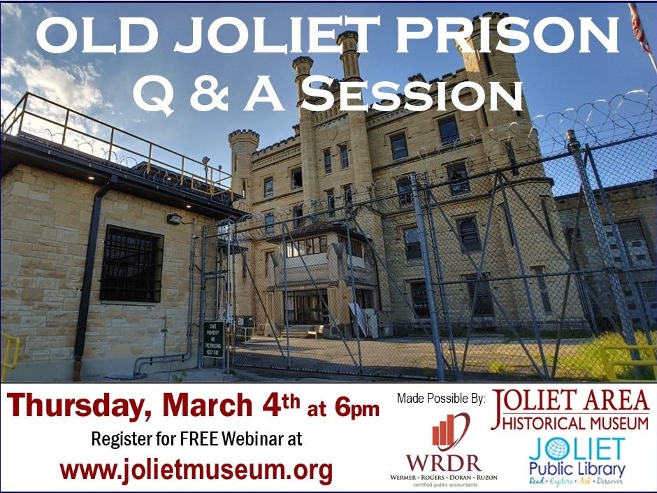 Join the Joliet Area Historical Museum's Free Virtual History Series as we present The Old Joliet Prison Q&A Session on Thursday, March 4th at 6pm.