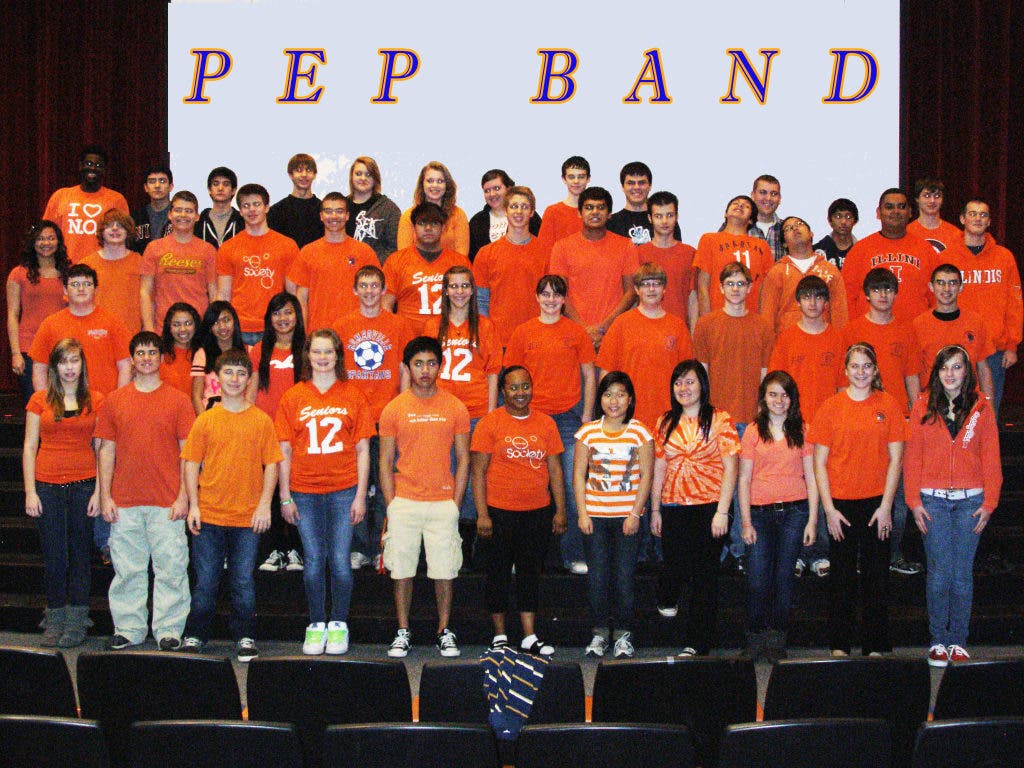 Pep band members include Hannah Ford, Will Caron, Bryan Gaidelis, Amy Zajda, Rex Labis, Camile Depluzer, Joyce Kim, Micaela Marasco, Nicole Jeffrey, Jill Crocker, Mary Ford, Michael Murray, Emily Lopez, Angelique Labis, Abby Molen, Lukas Gacek, Holly Polis, Briana Floyd, Mike Corcoran, Nathan Carpenter, Blake Lawson, Brandon Lawson and Chris Heim.