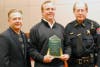 Photos: The new DARE car; Mayor John Noak, far left, and police Chief Mark Turvey, right, present Terry D’Arcy with a plaque in recognition of the donation. Credit: Village of Romeoville.