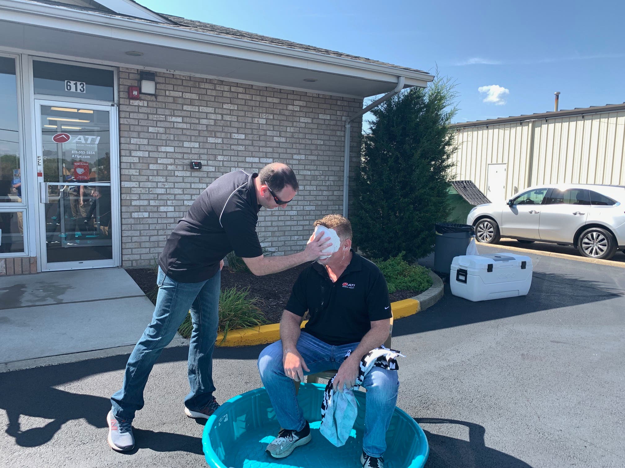 SHOREWOOD, IL — ATI Physical Therapy Clinic Director Jeff Lyon spent a good portion of his Thursday taking whipped cream pies to his face, all for a good cause.