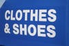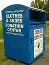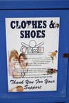 This is similar to the Children's Disease Research Foundation's boxes that are the same color blue, also with white letters that read "Clothes & Shoes" without the checkerboard border.