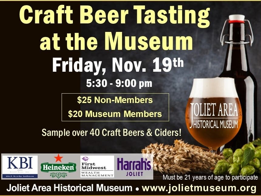 Joliet Area Historical Museum's Indoor Auditorium Theater on Friday, November 19th from 5:30-9pm sample over 40 hand crafted beers & ciders