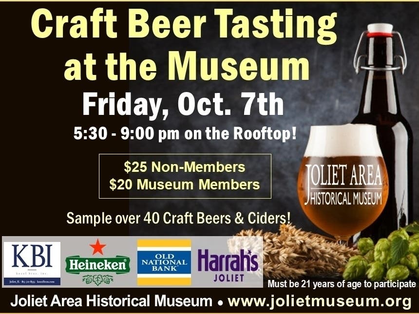 Joliet Area Historical Museum's Rooftop Venue on Friday, October 7th from 5:30-9pm - sample over 40 hand crafted beers & ciders