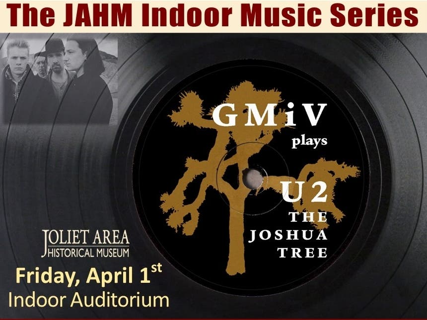 On Friday, April 1st at 7pm, the Joliet Area Historical Museum's "Indoor Auditorium Music Series" presents Great Moments In Vinyl playing tribute to U2 and their iconic "The Joshua Tree" album!