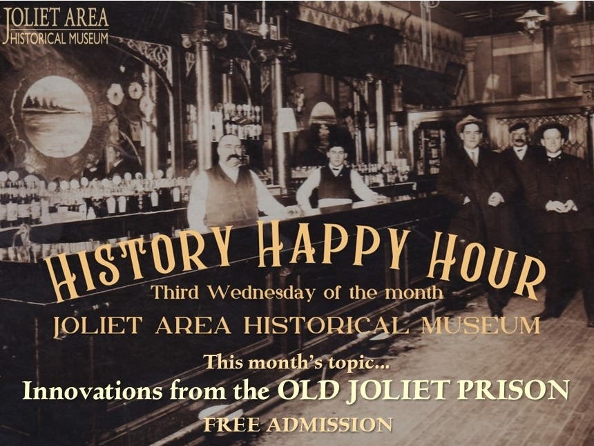 Visit with friends and enjoy a bite-sized bit of local history! Join us for History Happy Hour - Libations and Learning! On March 15th, Zak Tyler will present a "lightening talk" about Innovations from the Old Joliet Prison that is sure to keep your attention! We'll keep it light and brief yet educational!