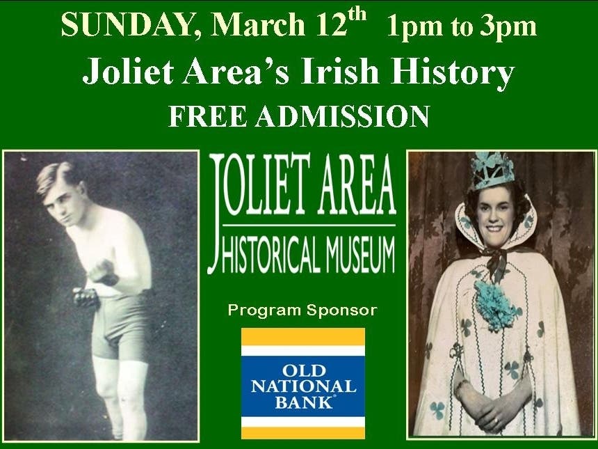 Join us from 1-3pm in the museum’s Indoor Auditorium Theater as our "Historic Joliet" series continues with a focus on the stories, struggles, and successes of Joliet's Irish heritage. Learn about the people, accomplishments and more though an enlightened presentation along with historic photos and more.