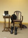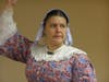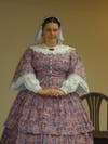 Mr. Lincoln was dressed in his typical black suit and tails with a stovepipe hat on the antique side table. His boots rested on the floor as the President walked around in his stocking feet. Mrs. Lincoln was dressed in a red, white and blue paisley dress complete with a white collar trimmed in lace and the requisite hooped skirt.