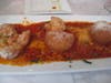 After taking our orders, our server brought out a basket of very hot toasted bread and parmesan-crusted crackers with a good olive oil for dipping. After we’d been munching on that and chatting for a while, we were surprised when a plate of mini aracini arrived at our table. We were told it was compliments of the house since the chef was a bit behind schedule.