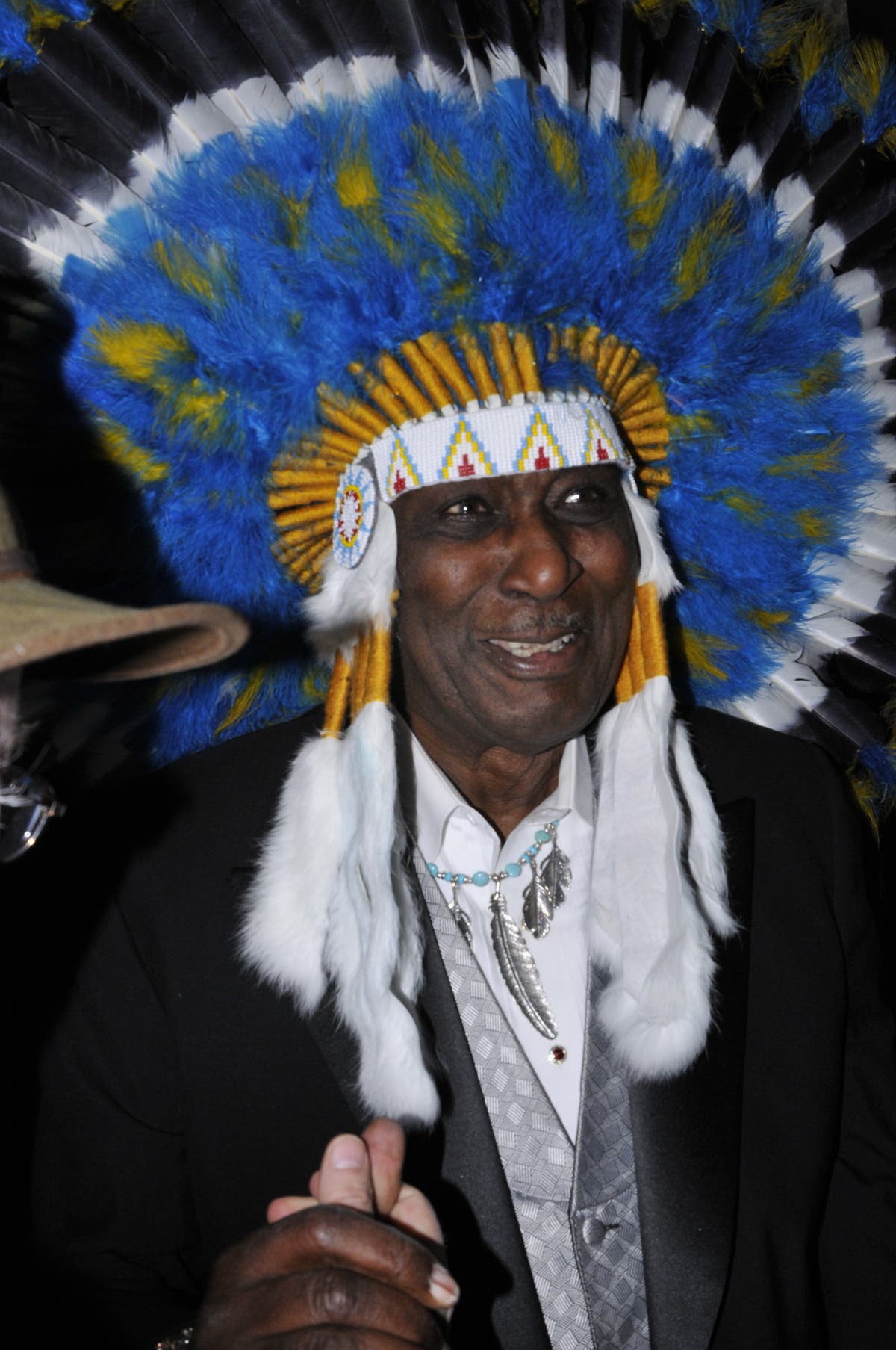The photo exhibit will include shots of Clearwater in his signature flamboyant costumes, which often included feathered headdress, from Chicago's stages and festivals taken by Howard Greenblatt, Peter Hurley, Karen and Mike Murphy, Roman Sobus, Lynn Orman Weiss, Allen Winkler, Steven I. Wolf and Renee Greenman.