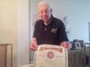 -Showing off the ring that represents the 300 game he bowled in 1948.