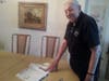 -Greenstein showing one of the many exhibits proving he is indeed a “Die-Hard Cub Fan.”