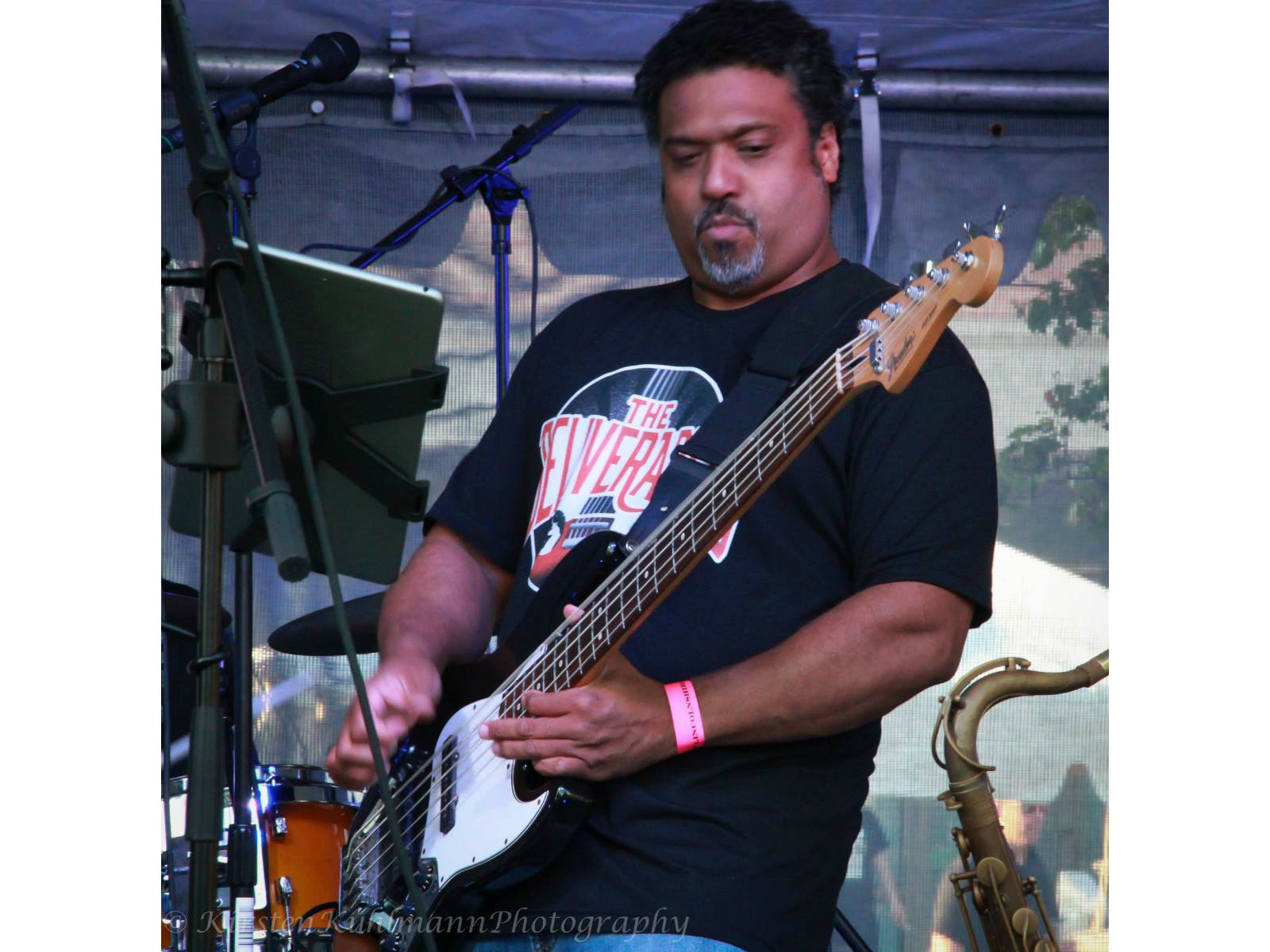 playing bass guitar