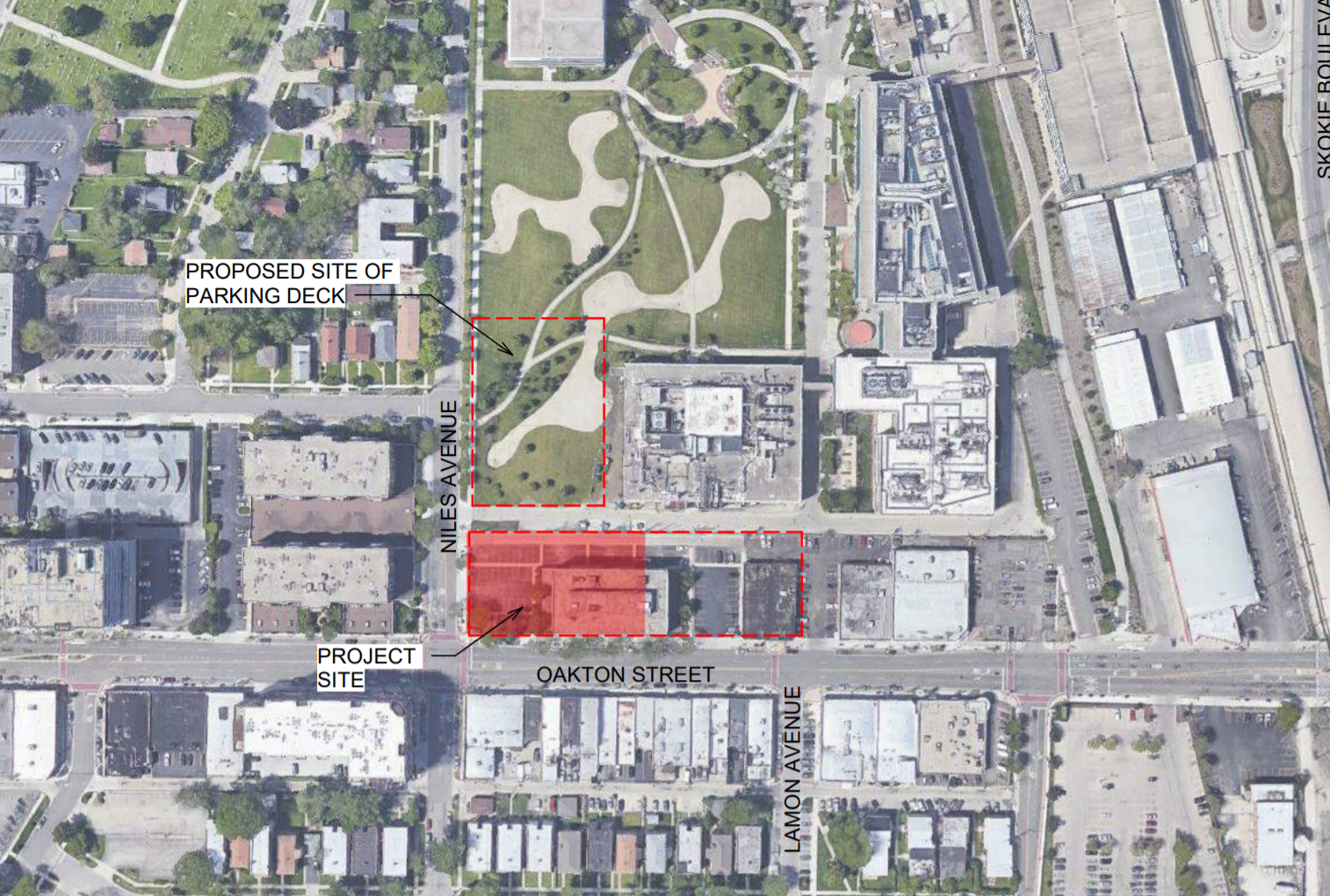 The proposed development also includes a plan for the village to purchase from the developer an adjacent parcel — currently the site of Annie's Pancake House — for a future residential development, as well to build a multi-story parking garage on a site of a small park at Niles Avenue and Oakton Terrace.