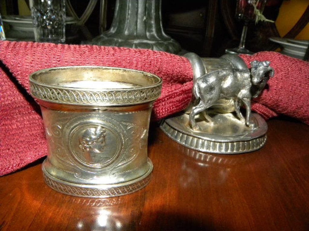 One of my favorite collections are my antique silver napkin rings. I have several figural napkin rings (some sterling, some silver plated), mainly animals, and many with names and dates from the late 1800's. Are silver napkin rings all the rage of the new millennium? Well, no ... However, during the 19th Century, every modest to affluent Victorian would not be caught without a well dressed table on display for a dinner party! Pretty figural napkin rings were used for lady guests, animals figures for children and more masculine designs were reserved for men. These rings were not only attractive, but practical as well. During these pre-Purell days, they were used to identify which napkin belonged to which guests, aiding in the prevention of germs and illness.