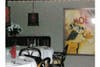 Decor: The restaurant has a dark, romantic atmosphere, created by vaulted ceilings and wooden beams throughout the bar and dining room areas. A deep color palate of red and black is used against the crystal chandeliers and eclectic artwork, making the space warm and inviting.