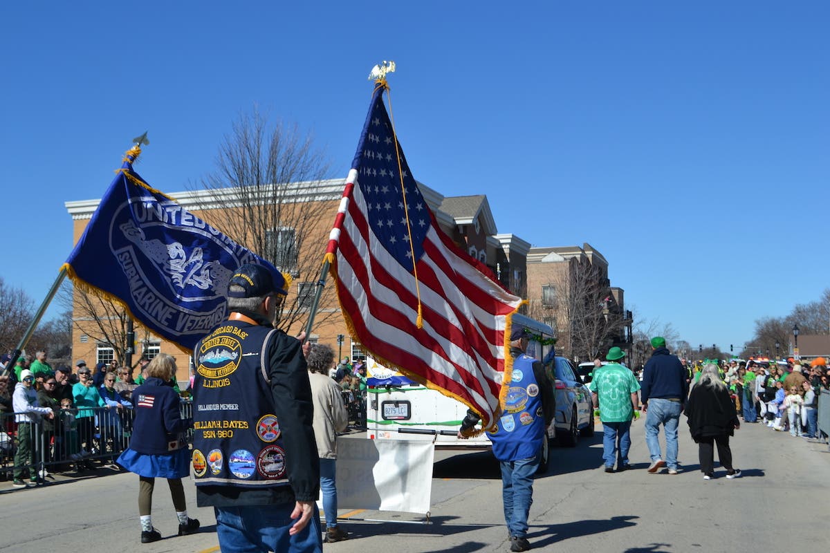 The parade traveled from 179th Street north to the Subway parking lot at 172nd and Oak Park Avenue. In recognition of their service to the United States, and celebration of the country's 250th birthday, members of V.F.W. Post 2791 and the Tinley Park Veterans Commission led the parade. Also featured were American Legion Post 615 and the U.S.S. Chicago Base Submarine Veterans.