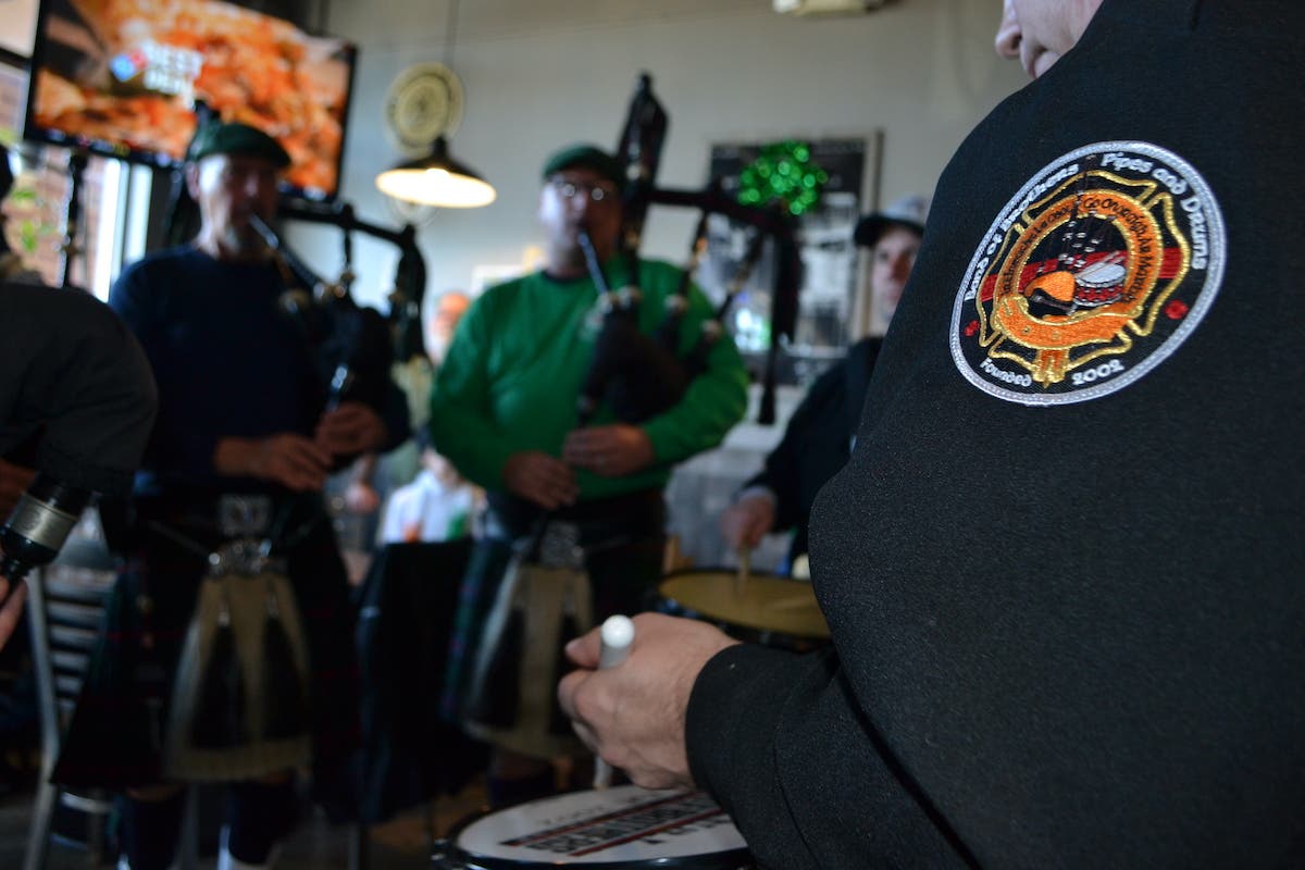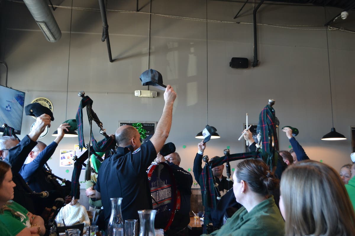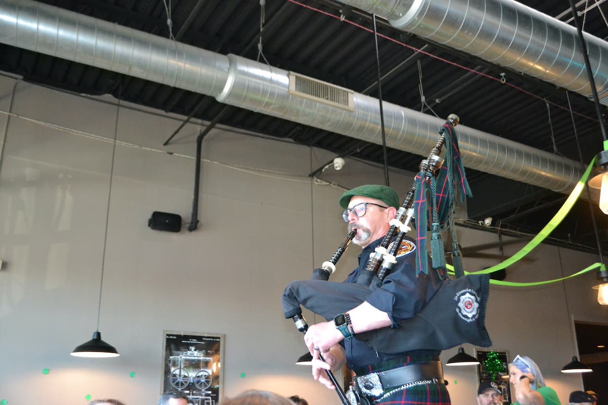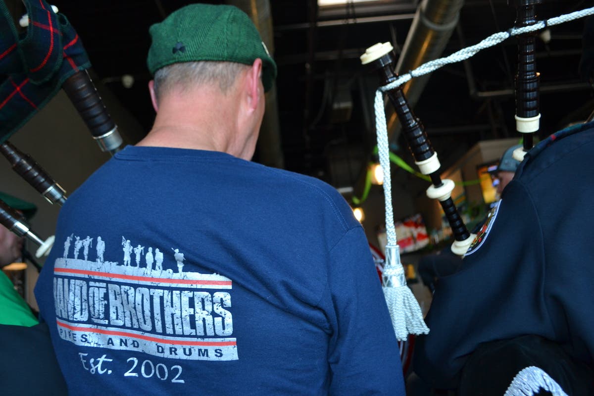 After the parade at Flipside Brewing, 7144 183rd St., customers were treated to an intimate performance by Band of Brothers Bagpipe and Drum Band, captured below.