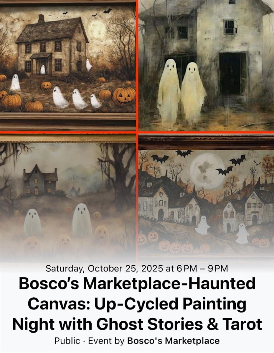 On October 25, join us for Bosco’s Haunted Canvas Upcycled Painting Night, a 21+ event filled with spooky creativity and ghost stories! Then, on October 30, relax and connect with fellow readers at our FREE Adult Book Club.