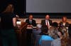Photo 5: Board members Chris Kosel, Arvid Johnson and Dee Molinare listen to a parent address the board.