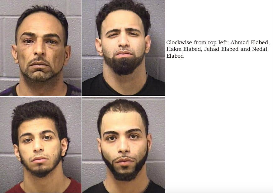 Ahmad Elabed, 46, Hakm Elabed, 23, Jehad Elabed, 18, and Nedal Elabed, 25, who all live at 20205 S. Fairwood Court, were charged with felony mob action in connection with the alleged Sunday afternoon incident.