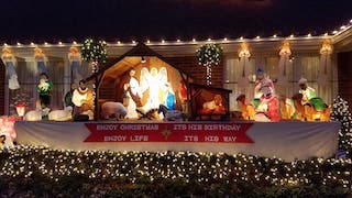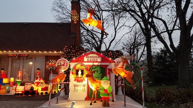 2749 Glenview Rd, Glenview -- Robyn Murov’s husband, Danny, has been decorating since he was 5. New this year is their smaller, but still impressive Christmas tree, palm trees in the nativity, and a whimsical reindeer games flight school, including a reindeer circling the sky. Their house has been featured in Mary Edsy’s best-selling, Best Christmas Decorations In Chicagoland.