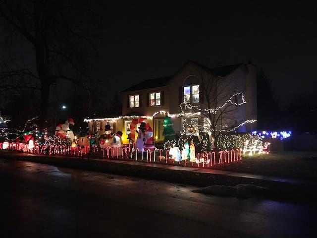 2389 Iroquois Lane, Yorkville -- Nothing captures the Christmas spirit more than a light show synced up with Andy Williams belting out “It’s The Most Wonderful Time of the Year.” Big Lou’s display does not disappoint. So great we included a picture and a video.
