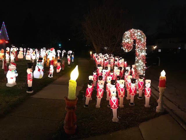 25658 Kensington, Monee -- This stunning display features an arch of lights with toy soliders welcoming visitors to Eugene Reyna’s winter wonderland. Lights are on from 5 to 10 p.m. daily.