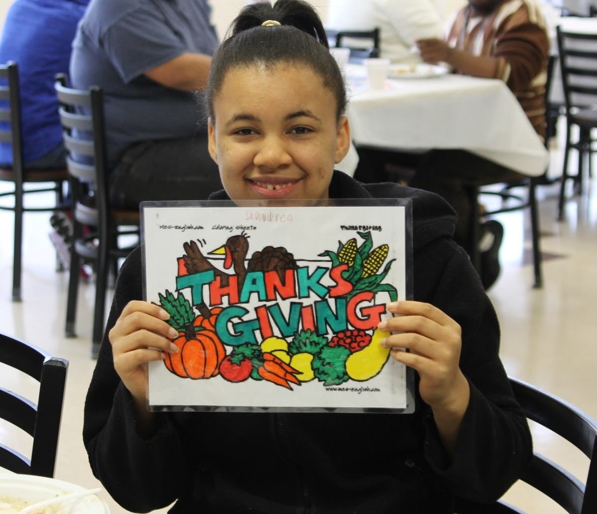 Before the holiday break, on Wednesday, November 27th, students and staff at the Lt. Joseph P. Kennedy School came together to celebrate what they were thankful for with their own holiday feast. A Thanksgiving meal along with dessert was prepared by the St. Coletta’s culinary staff and students. When asked what they were thankful for, many students responded with “my family” and “my teachers.”