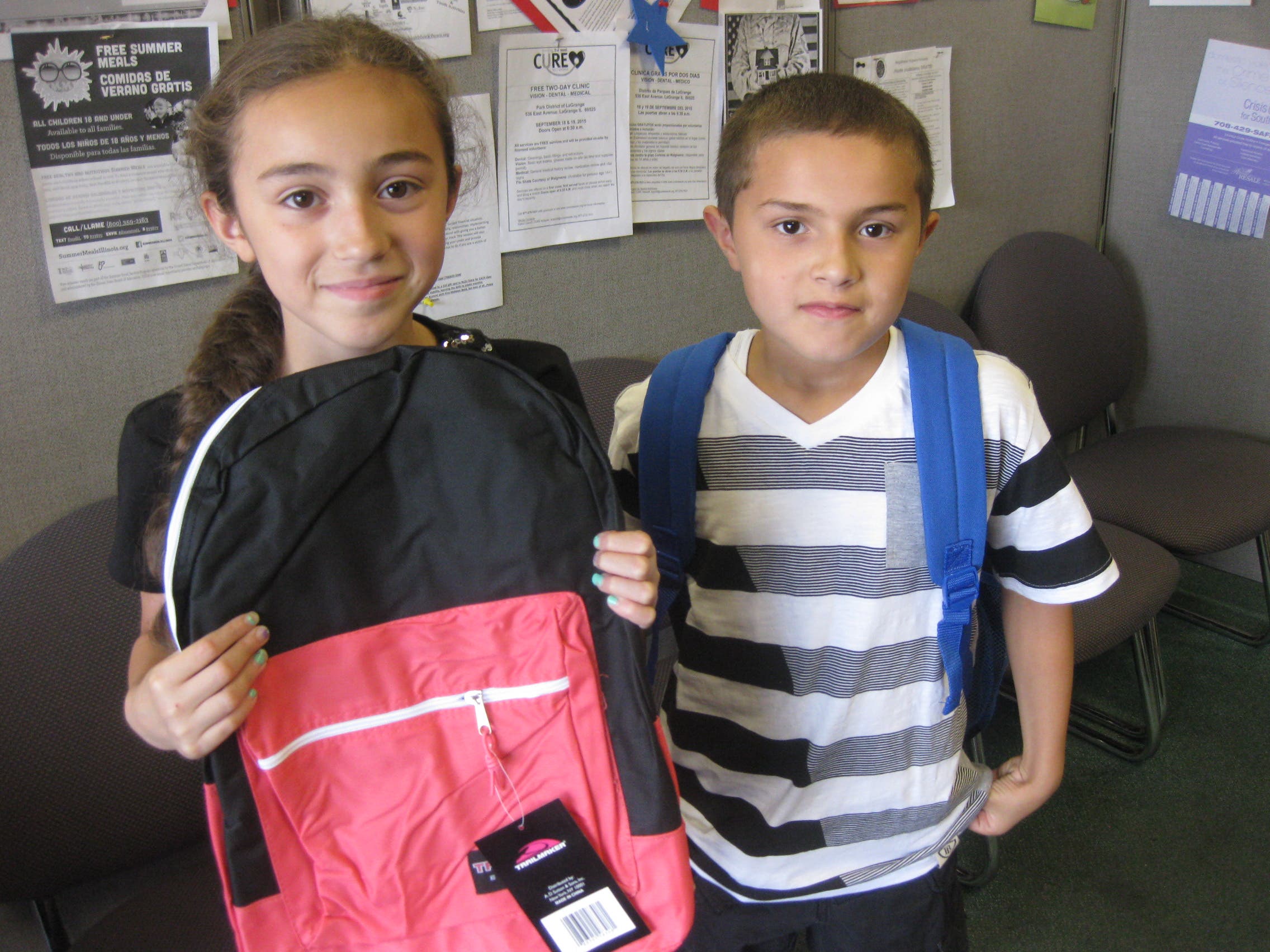 Caption: Destiny and Eddie Torres of Blue Island were among 1,500 south suburban children who will head back to the classroom with a backpack filled with new school supplies through Together We Cope’s annual Back to School Program.