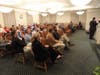 Potential solutions offered by residents included making Woodland a cul-de-sac by blocking Ogden access, prohibiting left turns onto Woodland, adding parking restrictions and/or at least placing a permanent police speedometer on the street.