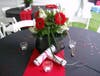 Another easy centerpiece idea is to make copies of the graduates diploma .Tie them with ribbon in the school colors and place on the guest tables.