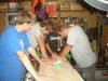 The weekend before the installation, Justin organized an even larger group of boys to build the unit. Despite the rain, boys from Scout Troop #3, younger scouts and older boys who have graduated from scouting, came to help out.